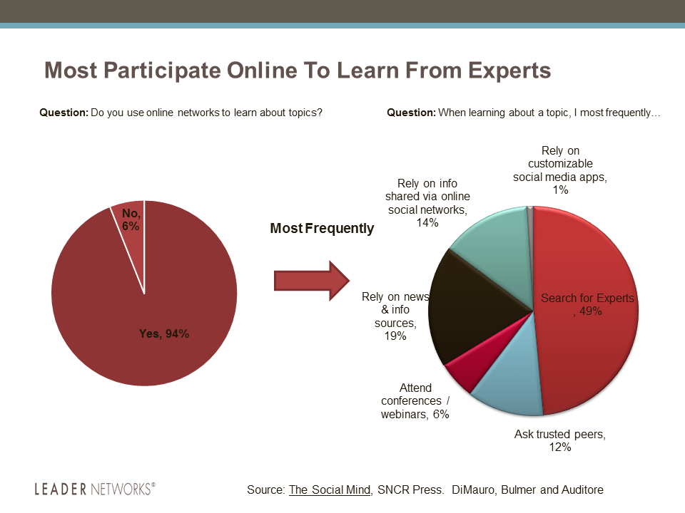 - Most use social networks to learn and get smarter on topics and to connect with or learn from experts.
